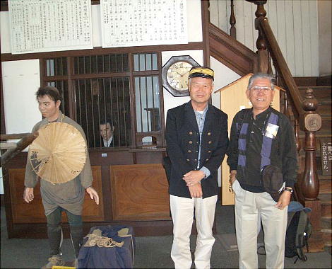 杉本さんが当時の駅員の制服を着ているが、「まるで、そのまんまやん。」「よう似おてるわ。」「そのまま駅員になれるで。」と