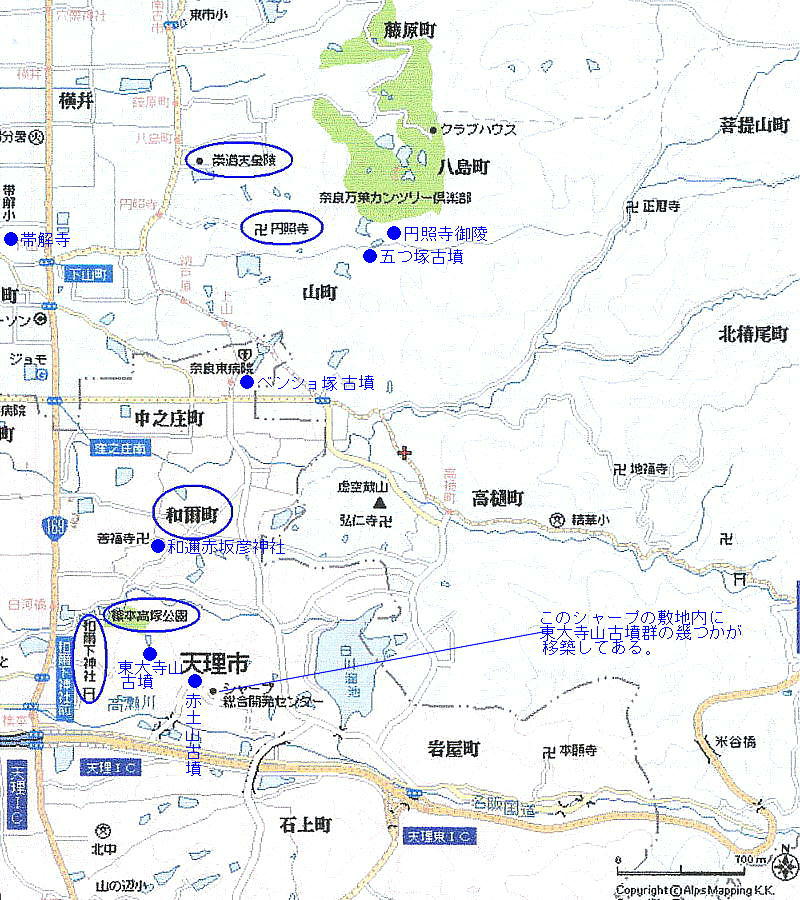 の古墳が東大寺山を中心にして築かれ、「東大寺山古墳群」と呼ばれている。シャープがここに研究所を作ったとき、おびただしい