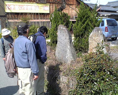 櫟本駅前から歩き出してほどなく石碑があって、「柿本人麻呂碑」とあったが「辞世の句」と彫られていて胡散臭かった。