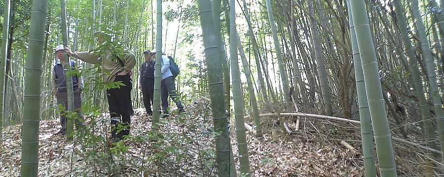 50年以上も前に行われた発掘調査の跡は、堆積した笹の落ち葉に埋もれてどのあたりだったか見分けられない。行き着いた最高部