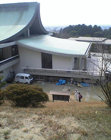 天理教本部のほうへ戻り掛けたら、手前に登り口があって、奥の方へ入っていく踏み分け道があった。