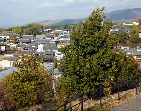 櫟本高塚公園より和邇町を見る、遠方の禿げ山は三笠山