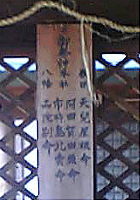 殿があり、いかにも村の中の旧村社という雰囲気である。主祭神として阿田賀田須命(あたかたすのみこと;赤坂比古命)と市杵嶋