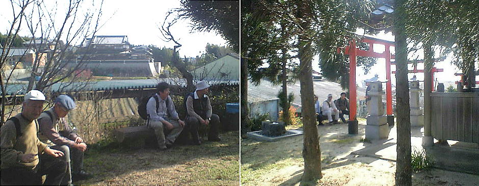 下から憤頂まで鳥居が並んでいる。頂上には稲荷が祀ってあり、ベンチも幾つかある。ここで小休止。ベンショ塚とはまた変わった