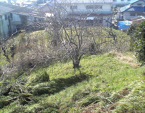 憤頂から見た後円部。すっかり果樹園になっている。