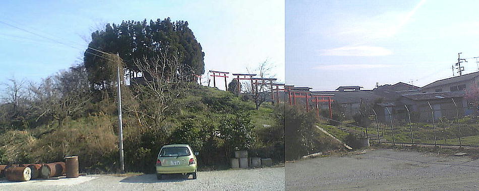 JR帯解駅から柴屋町を通って 169号線下山町の信号に出ると、すぐ東側に真っ赤な鳥居が並ぶ墳丘がある。墳頂に森常稲荷が祀ら