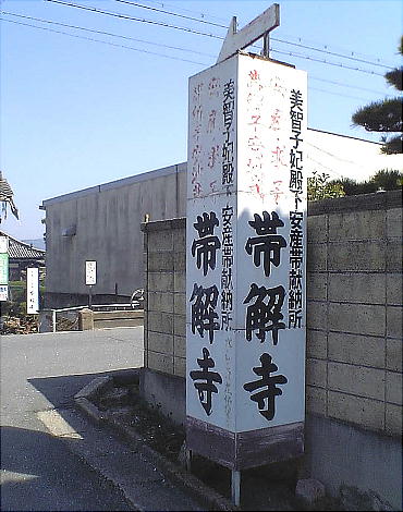 JR奈良駅より桜井線に乗り、2つ目「帯解駅」で下車する。徒歩2,3分で帯解寺の大きな看板があってすぐわかる。美智子皇后、