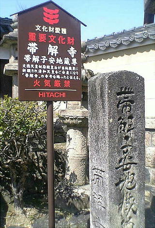 帯解寺は華厳宗の古い寺院で、本尊は地蔵菩薩。俗に帯解地蔵と呼ばれている。弘法大師の師である勤繰大徳の開基した巖渕坊(い