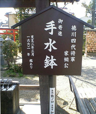 本堂前には4代将軍家綱が寄進した石の手水鉢がある。