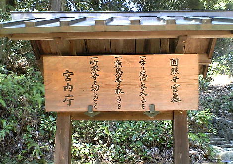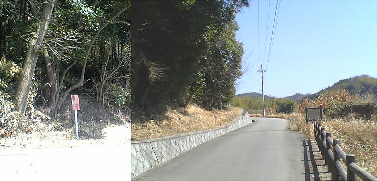 円照寺へは帰りに寄る事にしてさらに道を行くと、何やら立て看板が見えてくる。