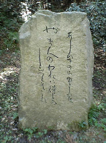 参道に、女帝で奈良朝2代目、第44代元正天皇と、天武天皇第5皇子で日本書記を編纂主宰した舎人親王の万葉歌碑2基が、建って