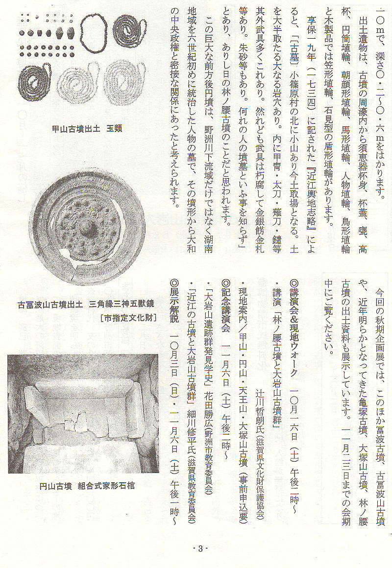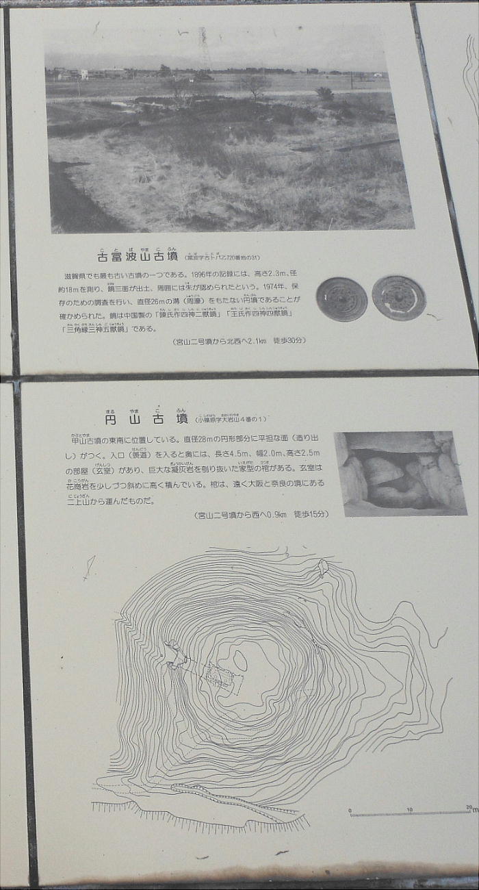 の前方後円墳である天王山古墳、直径28mの円墳である円山古墳、直径30mの円墳である甲山古墳、があり、いずれも近江を代