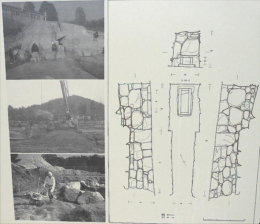 に袖をもつ小さな横穴式石室が発見された。石室は、板石状の花崗岩を積んで築かれており、羨道は狭く短い構造をしている。