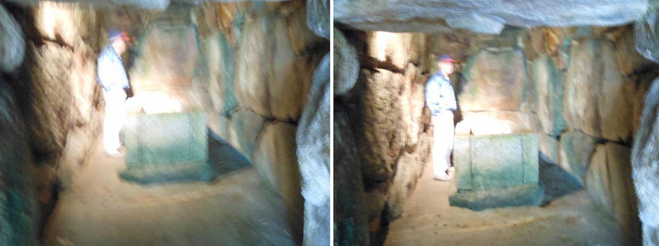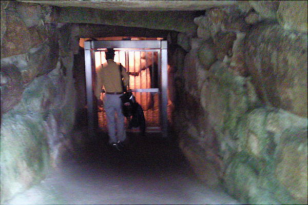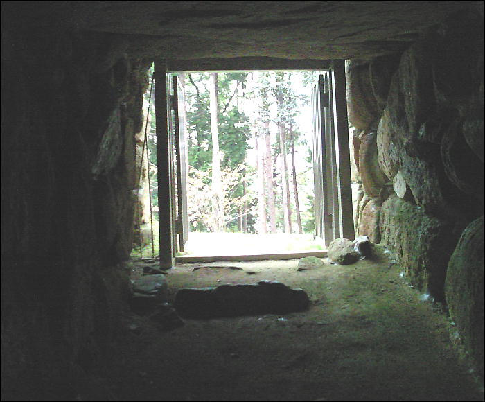壁に向かって左側に袖をもち、長さ4.3m、幅2.45m、高さ3.1mを測り、床には玉石が敷き詰められている。