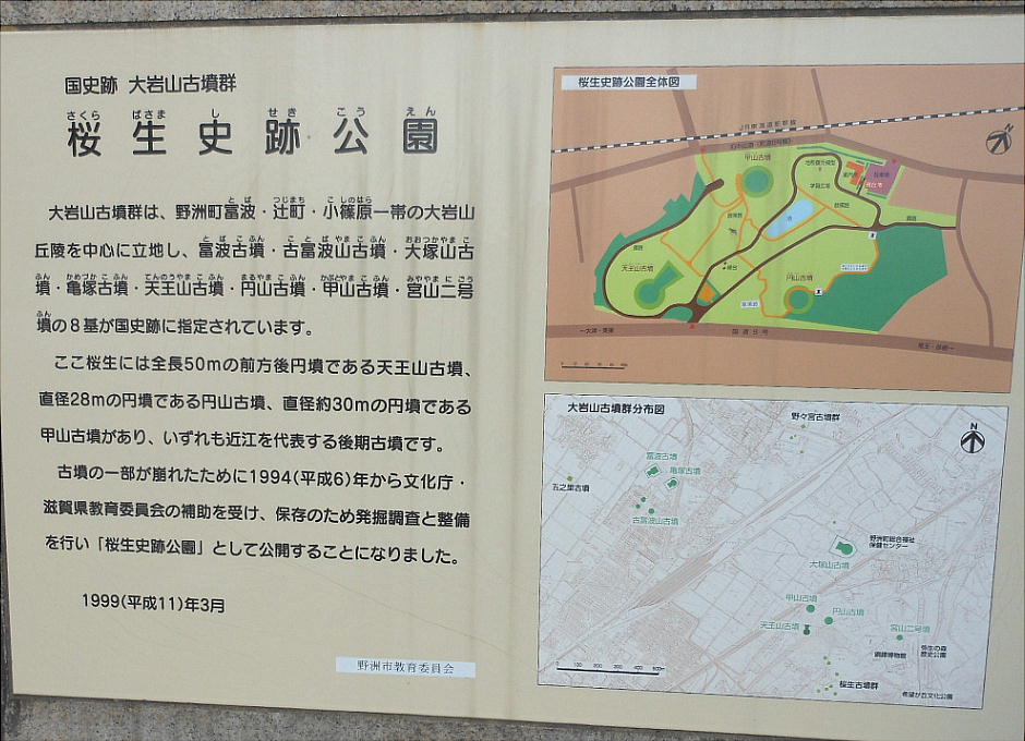 特色ある家形石棺が納められている円山古墳・甲山古墳や、前方後円墳の天王山古墳からなる桜生史跡公園が近くにあり、さらに大
