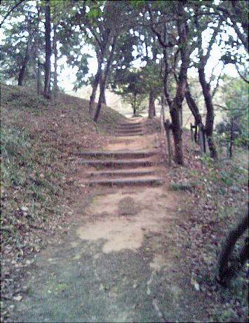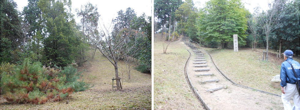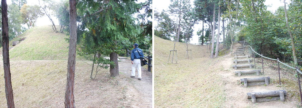 古墳は急な斜面である。こうしてみると、ふつうの山のようである。