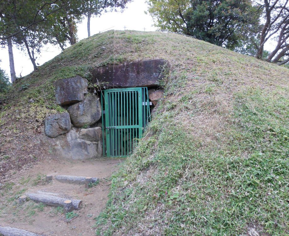 標高110mの丘陵先端に造られた6世紀前半の円墳で、直径約30m、高さ10mの規模をもち、内部には、西に開口する横穴式石室