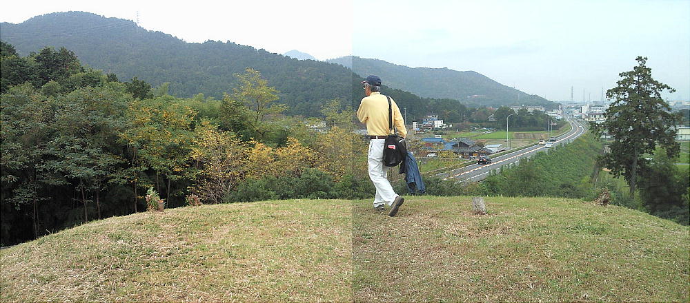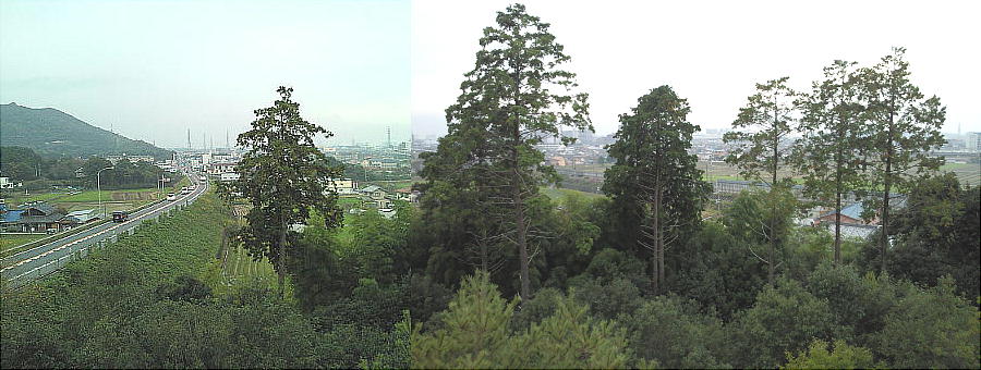 の建設に伴う土取りのため削り取られ消滅しているが、かつては、標高150m(比高差約70m)の丘陵が平野部に突き出るように伸びていた。