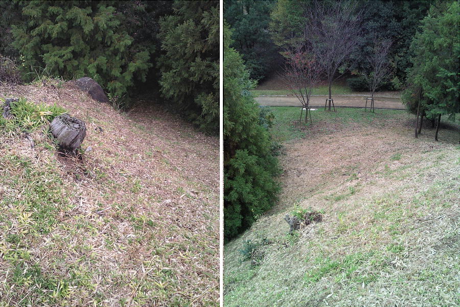 も高い尾根上に埋められ、同年発見の9口が約50m下がった斜面に、さらにここより北西に約40m下った地点に明治14年発見の14口が埋め