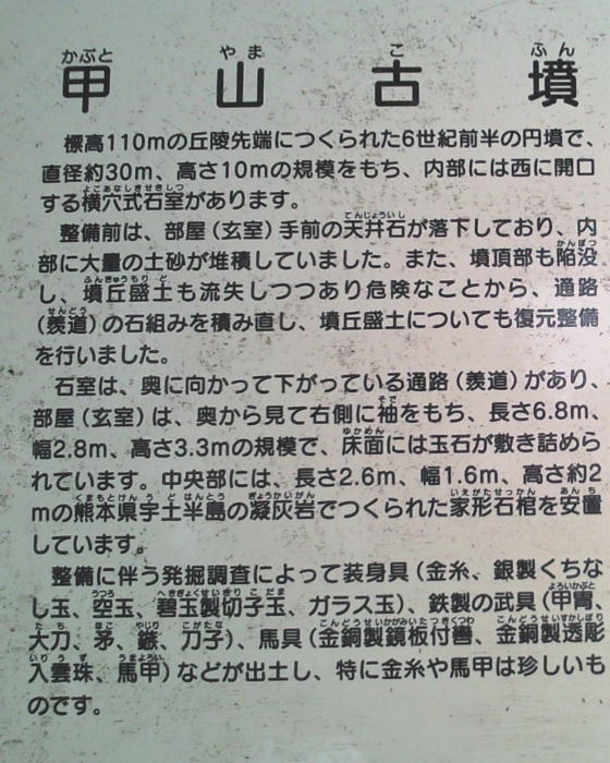 表する後期古墳である。とくに「円山古墳」と「甲山古墳」では、横穴式石室の内部に熊本県阿蘇から産出した凝灰岩をくり抜いた