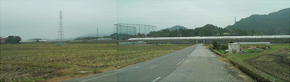 桜生史跡公園のすぐ側を走っている新幹線。5,6分に一本、上り下りで新幹線が通る。すごいダイヤである。