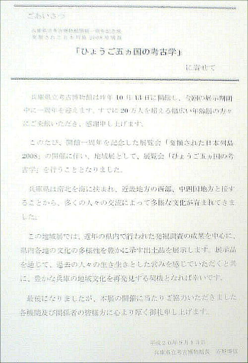 「ひょうご五カ国の考古学」展の概略を見る。
