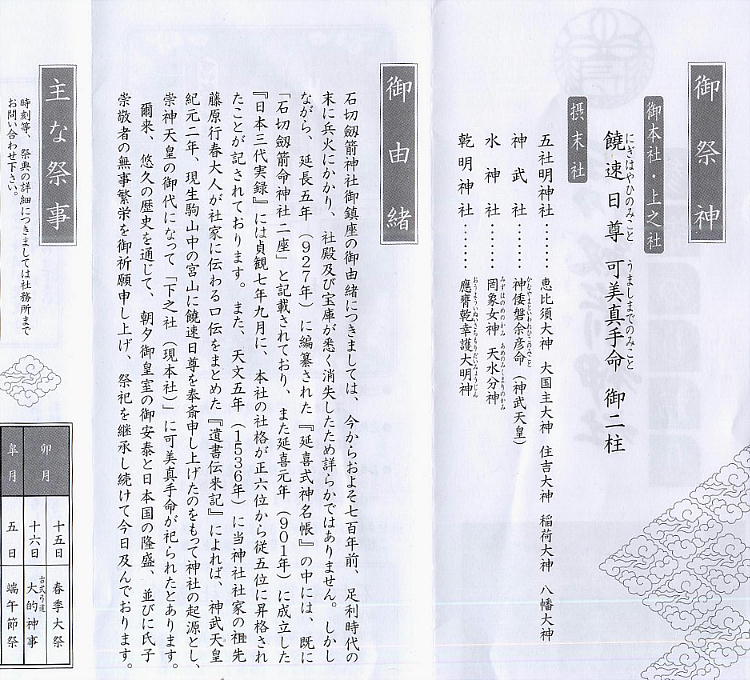祭神 : 饒速日命、宇摩志摩治尊(可美真手命)