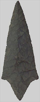この石器は大阪と奈良の境にある二上山に産するサヌカイトを使用し、石刃核より縦長の剥片をとる技法によって製作されたもの