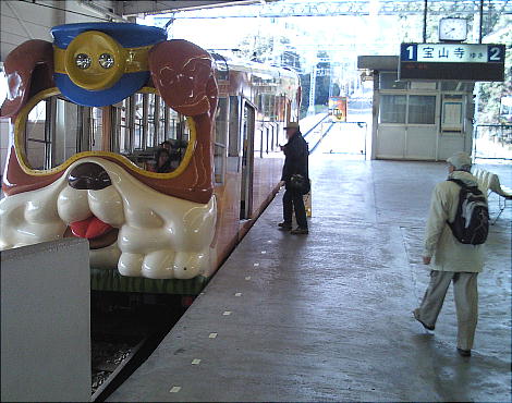 近鉄生駒駅に集合して、生駒駅に隣接した「鳥居前駅」から生駒山ケーブルカーに乗る。お子達向けのワンニャン電車。