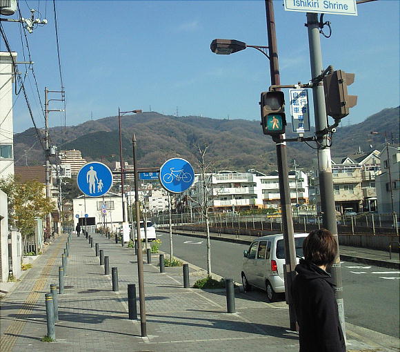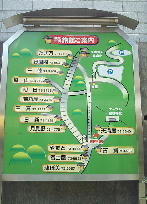 温泉街を抜けて宝山寺へ向かう。