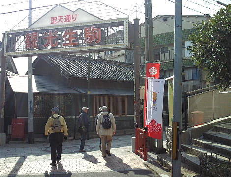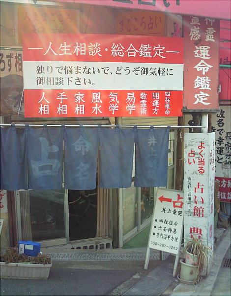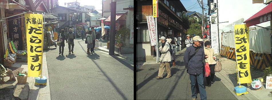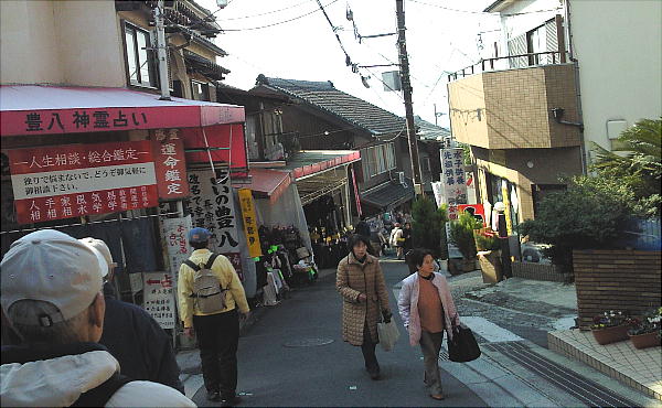 長い参道は占師、祈祷師の店が目立ち、他の地域にはちょっと類のないユニークさである。和漢の薬(サカモトが有名)や土産物