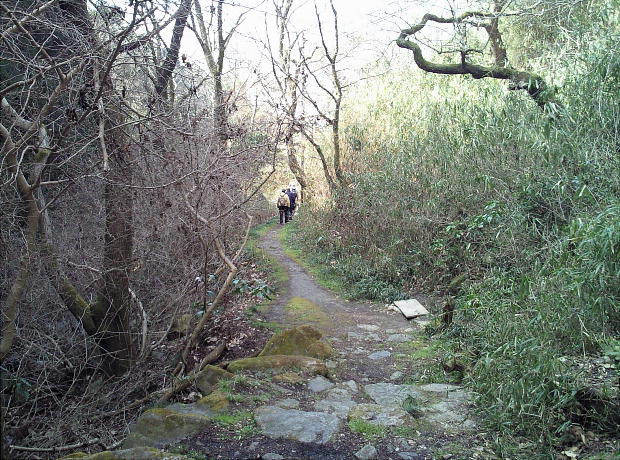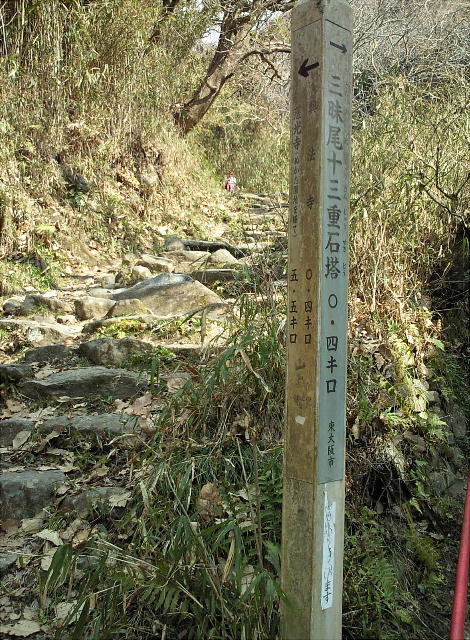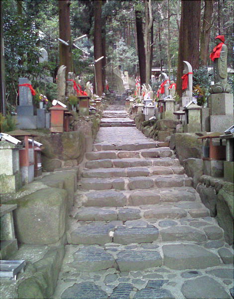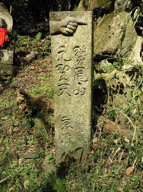 辻子谷の登り口から興法寺までは道がコンクリートと後半は石畳の道。この間の道の主に左側に石佛が多く並んでいる。