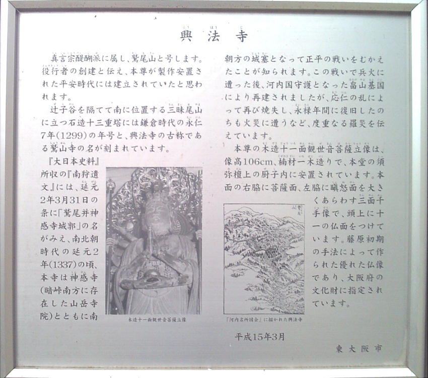 興法寺が本尊としているのは、元正天皇の代、行基菩薩が勅をうけて造立したという伝承される千手観音である。しかし、実際は
