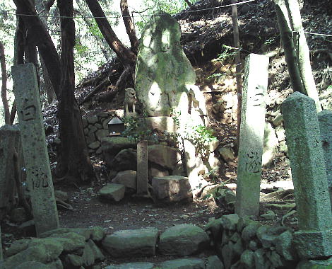 字神並の南、高野街道を東に距る二町許の處に在りて華表は街道の側に立ち、賽路の両側は巨松堰蹇し其の下々穿ちて進めば即本融