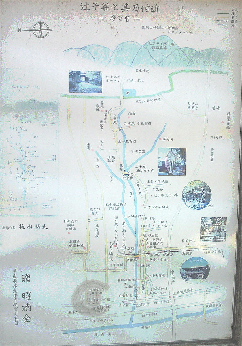 最寄駅:近鉄奈良線「石切」下車、辻子谷越えを東へ、約2KM 徒歩約45分、OR 生駒山頂より下る徒歩約20分