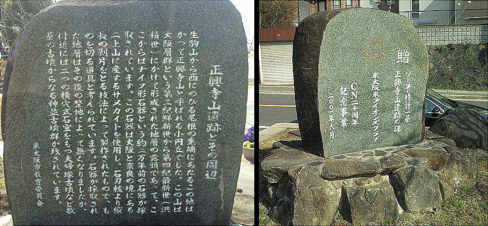 生駒山から西にのびる尾根の先端にあたるこの地はかって正興寺山と呼ばれる小円丘だった。大阪層群という第三記鮮新から第四