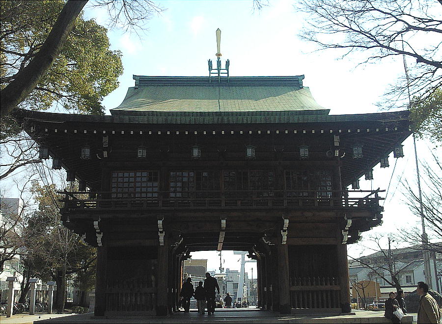 元々の本社である。明治初期に廃止され昭和46年再興された。石段と木々が美しいが、左手にはきんきらきんの宝物殿のような