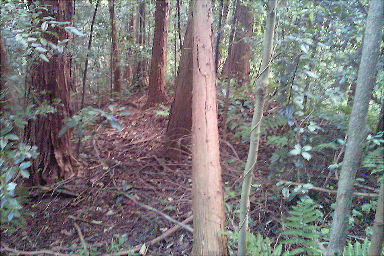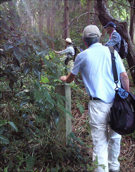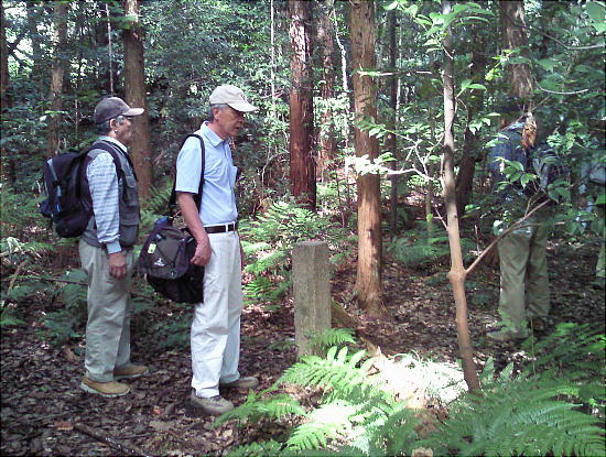 さらに奧へ進むと、尾根が終わると思われる所に小さな広場のような平らな場所があって、郭公さんによると「宮」の跡ではないかと言う。