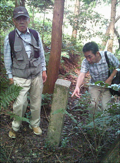 戸の家々がひしめいていたのである。上右の写真の上方に、写真では良くわからないが石段が数段残っている。部落の上へ登って