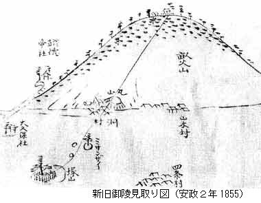 った「文久の修陵(1863)」の際に、宇都宮藩の顧問団の検討により決定されたという。神武天皇陵が現在の地に定められる前