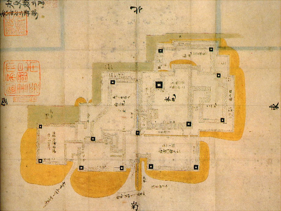 た。その城下町の繁栄の様子は、数次にわたる発掘調査で確認されているし、残された多くの絵地図や文献もそれを示唆して