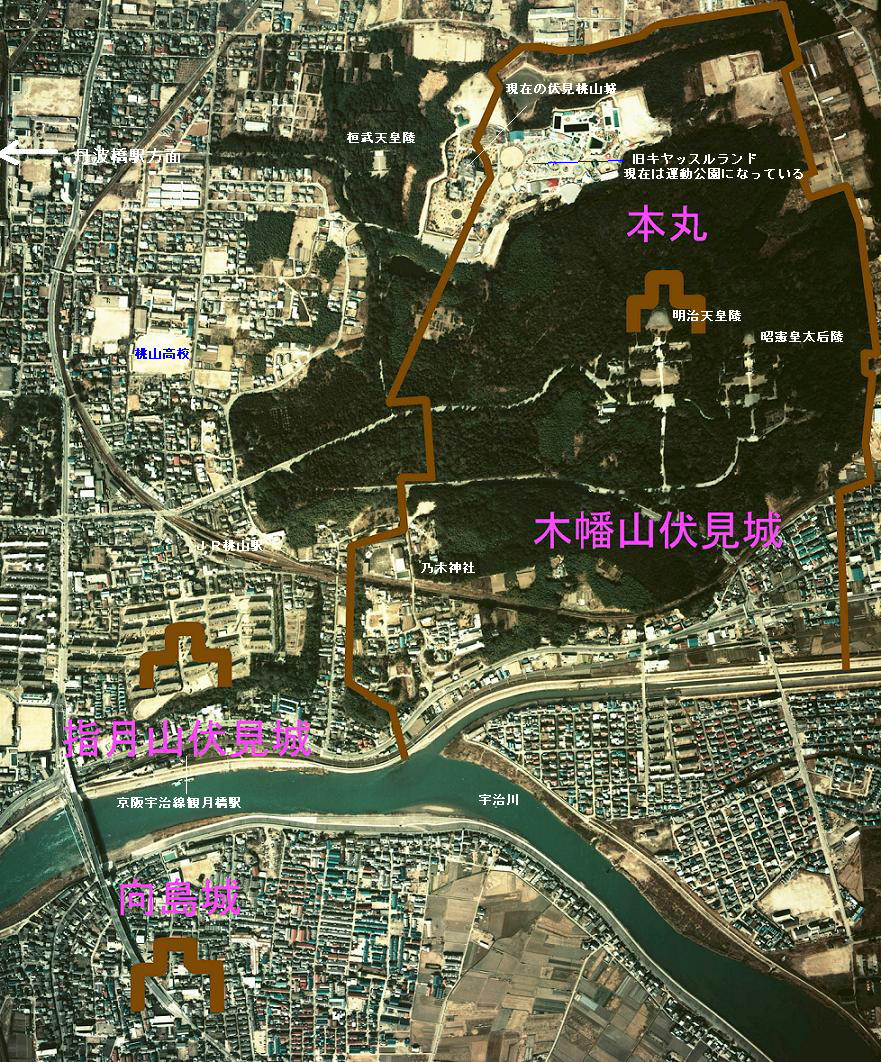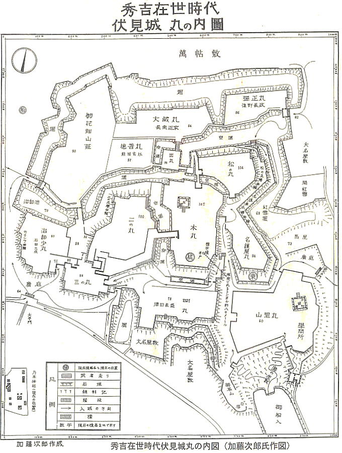 城がどういう状態であったのかはよく分からない。伏見城の研究自体が、現在このあたり一帯を宮内庁が管轄しており、発掘