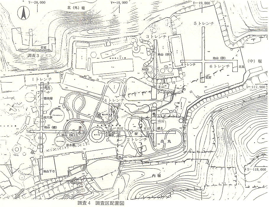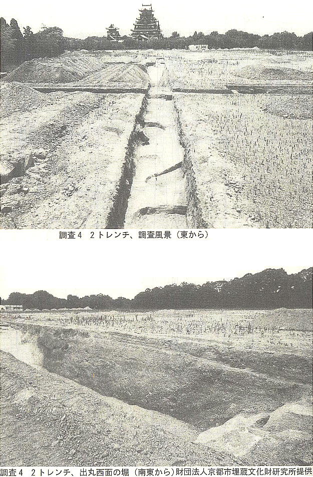 この調査で、敷地内に4−5mの盛り土がなされていることが判明したが、城郭を記した歴史的文献には存在しないものであ