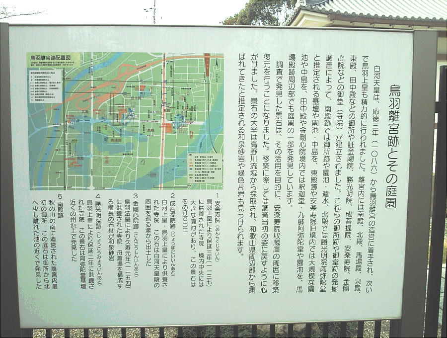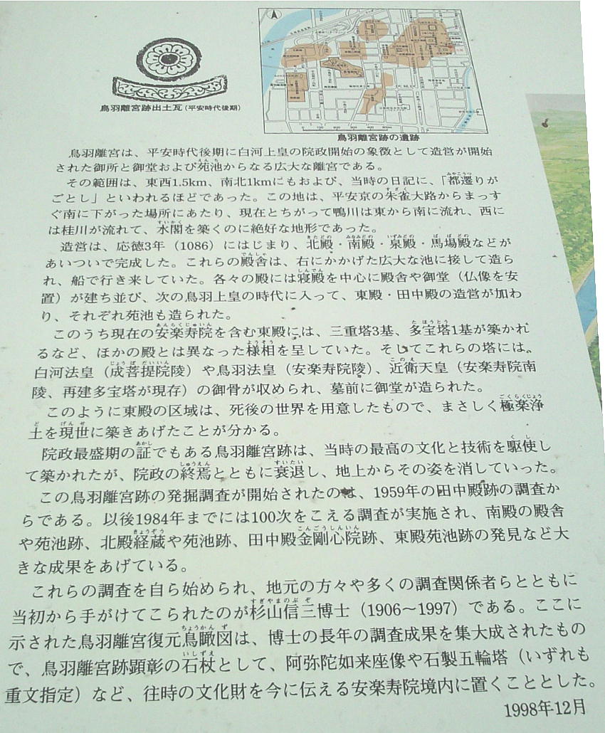 り、安楽寿院は離宮内に営まれた仏堂の後身である。鳥羽離宮(鳥羽殿とも言う)は、応徳3年(1086年)、時の白河天皇が退位後
