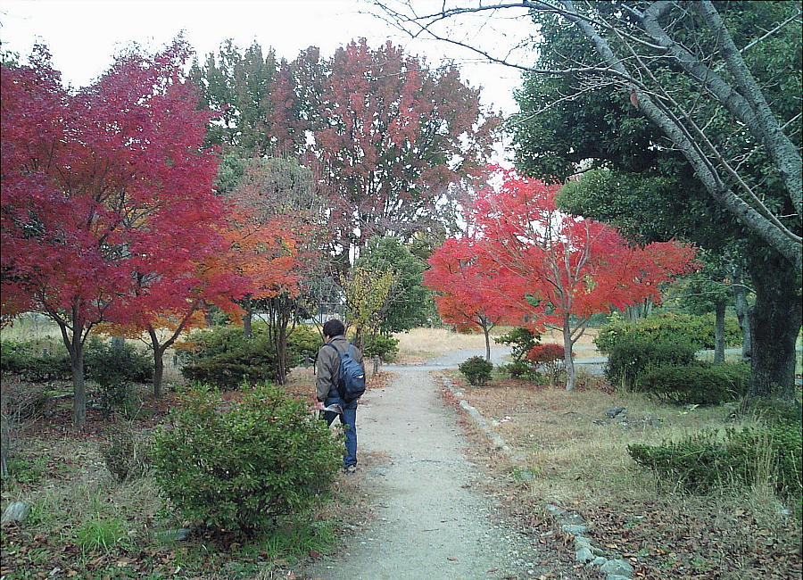 伏見桃山城の紅葉はすばらしかった。最後に深紅の輝きを見せていた。消え去る前のローソクの明かりのような感じだ。この