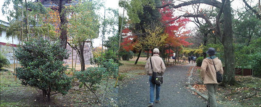 当初、城南宮・鳥羽離宮跡の紅葉を目あてにしたのだが、もう殆ど散っていてがっかりだったが、伏見桃山城内はまだ紅葉盛りで、