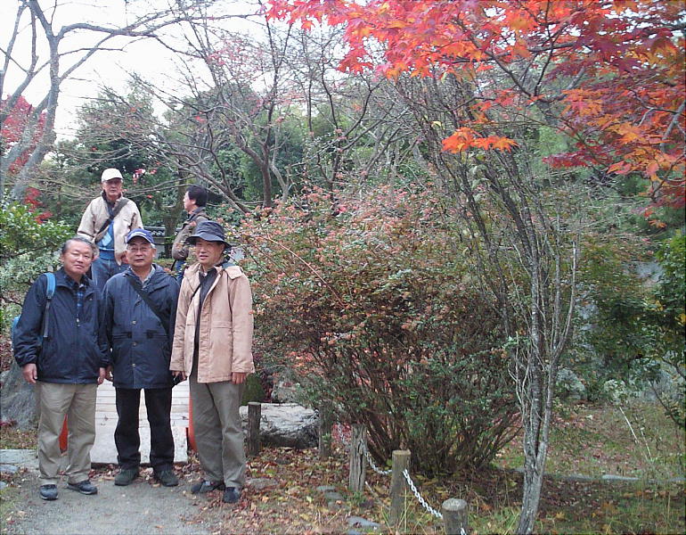 松田さんが、持って帰って鉢植えするためにもみじの苗を探している。昔、御所でも同じような紅葉の中を歩いて、その時みん