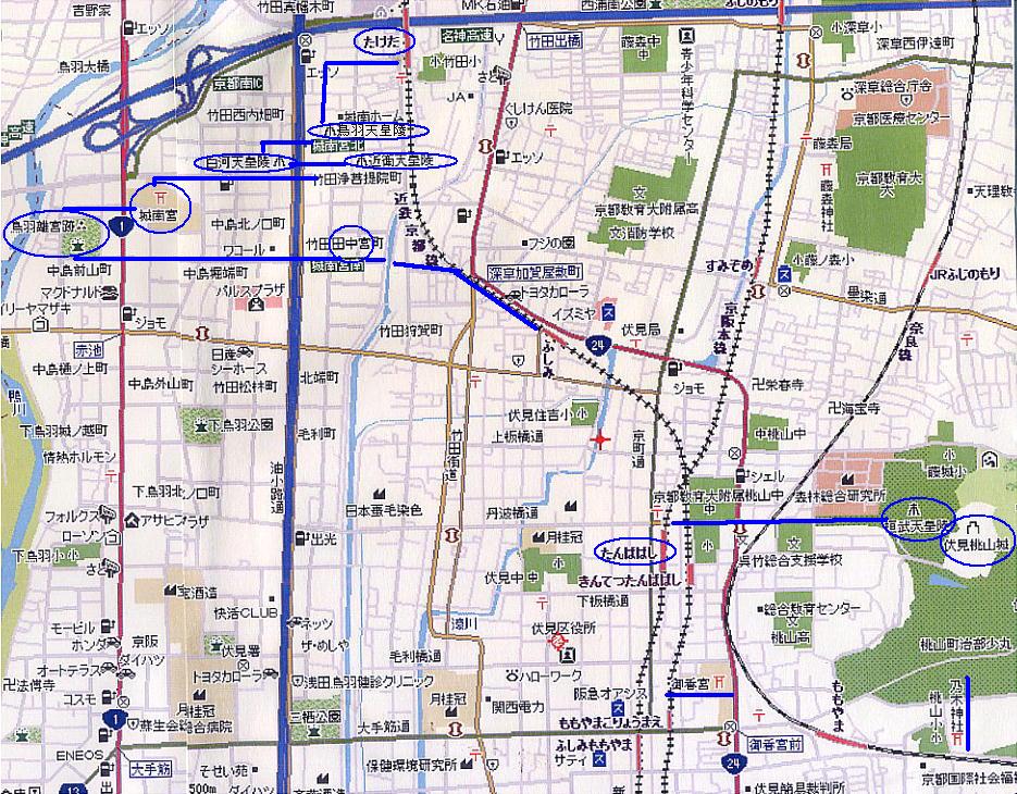− 鳥羽離宮跡 − 田中宮跡 − 近鉄「伏見駅」 ===(もしくは歩き)
