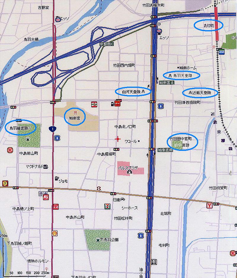 ・近鉄竹田駅 − 鳥羽天皇陵 − 近衛天皇陵 − 白河法王陵 − 城南宮