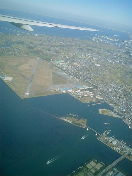 上は東京湾の千葉県側の沿岸。下は始まっている羽田空港の二期工事の現場。